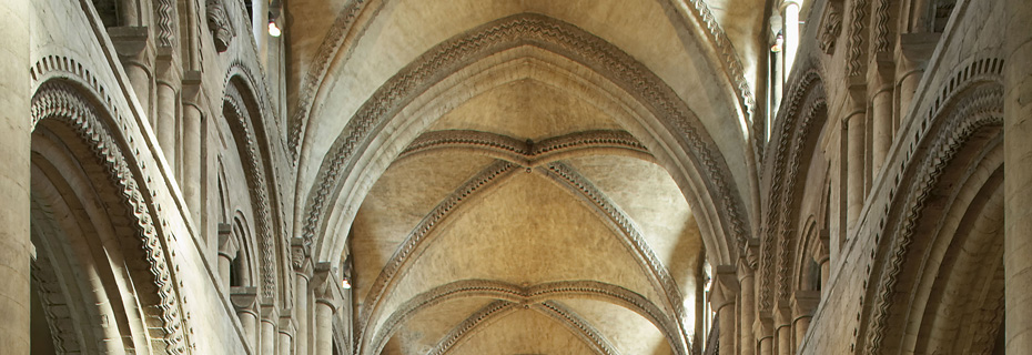 The nave vault of Durham Cathedral is the most significant architectural element of the Durham World Heritage Site because it marks a turning point in the history of architecture. The pointed arch was successfully used as a structural element for the first time here in this building. Semi-circular arches were the type used prior to the adoption of the structural pointed arch — the limitations of which is that their height must be proportionate to their width.