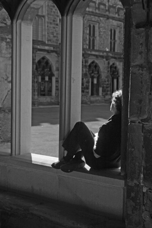 The cloister would originally have had glass in between the stone tracery, so sitting on a ledge daydreaming may not have been possible in the 12th century when they were first constructed. But they were always used for meditation, as well as for reading and writing.
