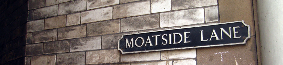 While it is difficult to appreciate the dry moat today, the line it followed has been preserved in the form of Moatside Lane, whose tunnel-like nature is due to its original function.