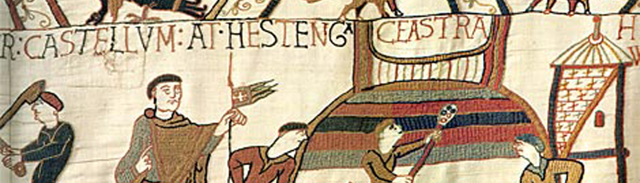 The Bayeux Tapestry, dating from the eleventh century, depicts the Battle of Hastings in 1066. Shown here is a motte and bailey castle being attacked.