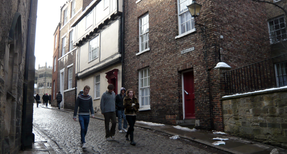 Owengate, the road leading up to Palace Green, gets its name from the gate originally located at the top of the street. The gate was part of the Castle defenses, controlling access to the Castle and Cathedral.