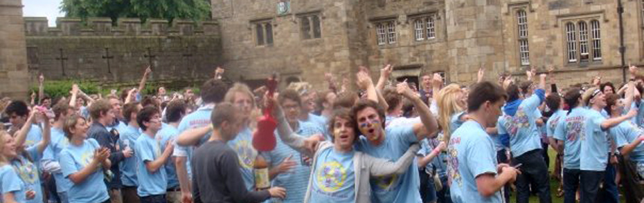 Hatfield students singing their college songs in the Castle Courtyard - an example of the friendly rivalry that exists between colleges.