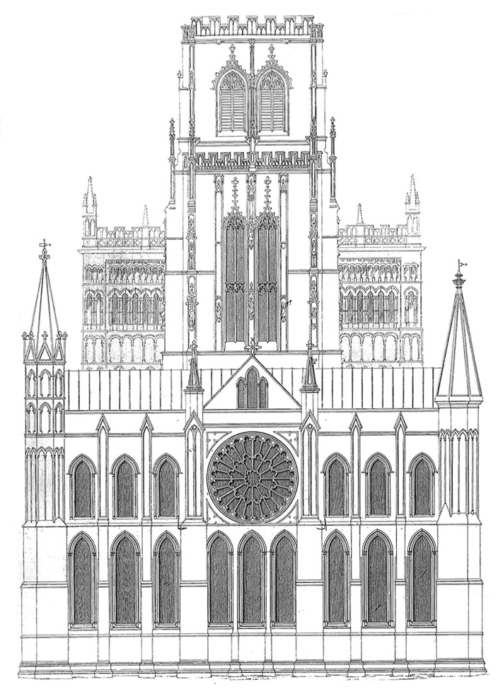 The Cathedral’s towers were especially important in Durham, where the building stands surrounded by rising land, and would otherwise be hidden from view.